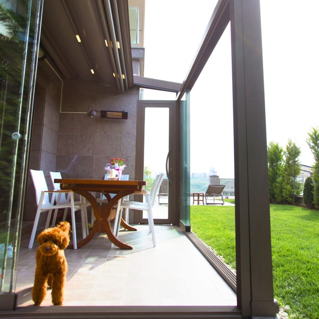 Nyitott terasz vagy zárt nappali egyetlen élettérben? Prémium üvegrendszereinkkel egyetlen gombnyomással alakíthatod otthonod az időjárás függvényében.